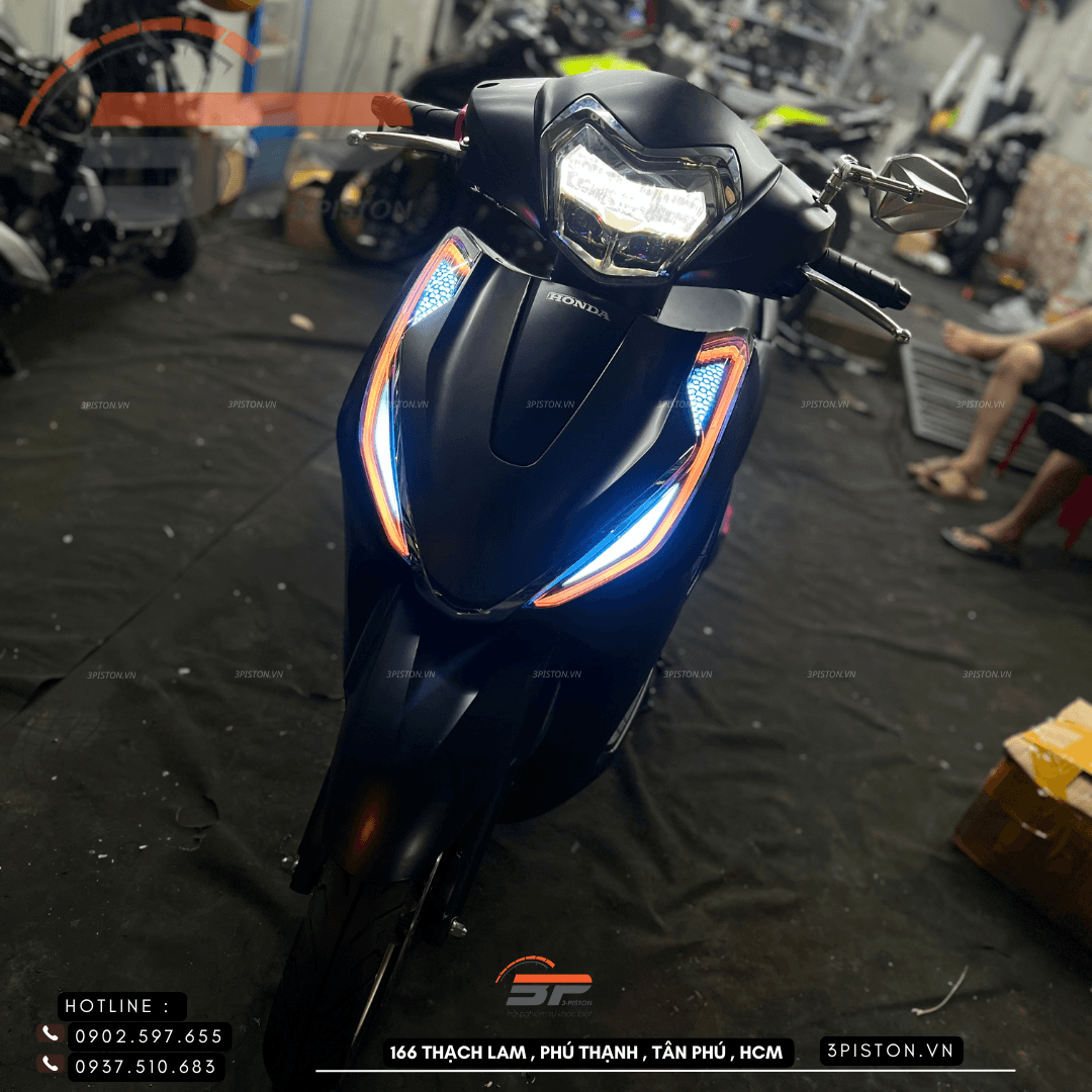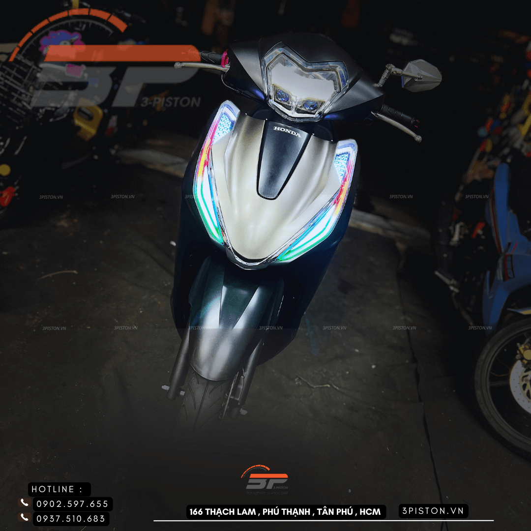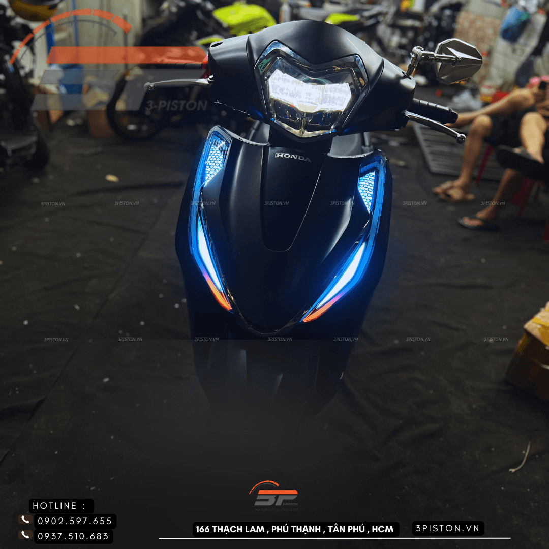 Đèn Led Audi giúp chiếc xe Lead 2026 trở nên sang trọng, cá tính và hiện đại hơn. Dải LED sáng đều không lộ nhân led với tay nghề thợ lâu năm tại shop 3Piston, sắc nét tạo điểm nhấn mạnh mẽ, đặc biệt vào ban đêm.